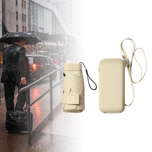 Mały, wodoodporny, kompaktowy parasol podróżny z pokrowcem w kolorze beżowym