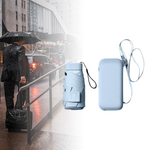 Mały, wodoodporny, kompaktowy parasol podróżny z etui w kolorze niebieskim