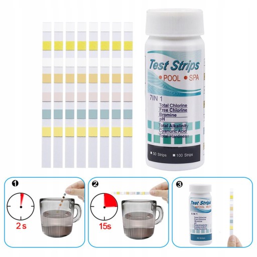 Pakiet zawiera: Opcjonalny: 50 sztuk: 50x paski testowe do basenu SPA 100 sztuk: 100x paski testowe do basenu SPA