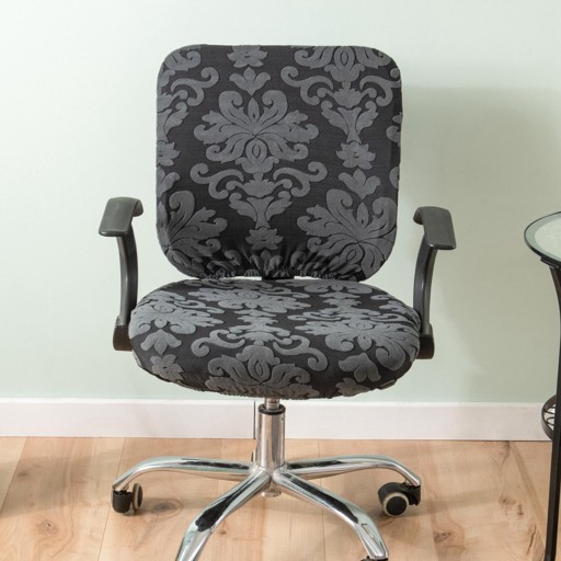 Черные вращающиеся чехлы на стулья с принтом и высокой прочностью.