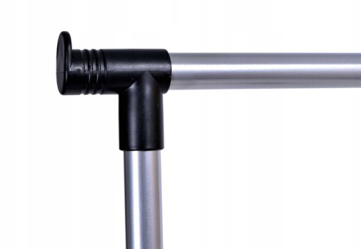 ✔️ Został wyposażony w pojedynczy drążek, którego wysokość można łatwo regulować za pomocą nakrętek oraz kółka umożliwiające wygodne przemieszczanie