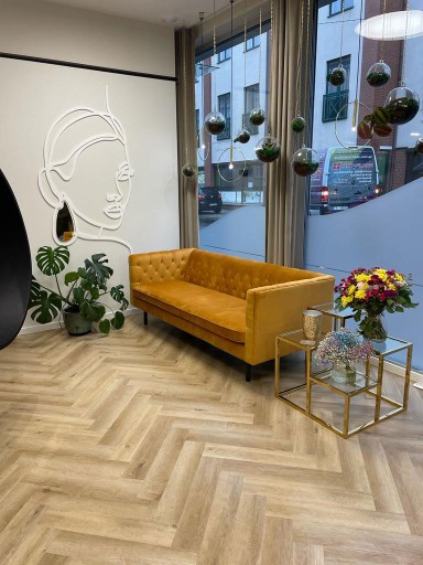 Panele winylowe z kolekcji Yukon Herrigbone przeznaczone do obiektów użyteczności publicznej, komercyjnych i mieszkalnych. Podłoga dostępna w formie klepki parkietowej w rozmiarze 12,2 x 61 cm. Oferowany wzór Mistral posiada bardzo ciekawe, naturalne wybarwienie dębu. Powłoka ochronna o wartości 0,55 mm z dodatkiem ceramicznym nadaje matowy, naturalny połysk oraz ułatwia pielęgnację. Produkt w systemie montażowym na klej.