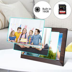 【Imponująca pamięć masowa】 Wbudowana pamięć 16 GB, nasza cyfrowa ramka na zdjęcia może przechowywać do 100 000 zdjęć. Dodatkowo możesz także importować zdjęcia w partiach za pomocą karty Micro SD (maks. 32 GB).