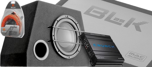 MAC AUDIO Skrzynia basowa BASS REFLEX 25cm + Wzmacniacz CRUNCH KABLE 10mm2