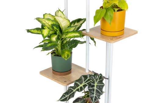 Miłośnicy roślin docenią nowoczesny kwietnik, który doskonale eksponuje każdy kwiat i doniczkę. Stojak na kwiaty został zaprojektowany tak, aby każda z roślin miała swoją przestrzeń do wzrostu. Wielopoziomowa konstrukcja kwietnika sprawdzi się przy roślinach o różnej wielkości i długości liści. Zapewni odpowiednią przestrzeń do wzrostu zarówno sukulentom, jak i palmom znajdującym się na kwietniku.