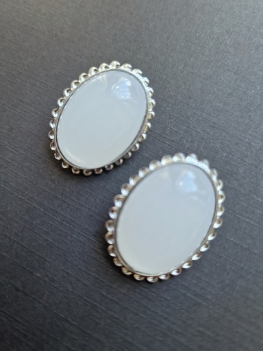 Kostiumowe klipsy vintage z dużymi opalizującymi kaboszonami syntetycznymi.