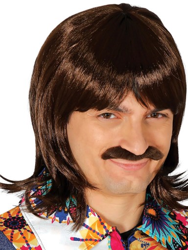 Zestaw zawiera: perukę ze sztucznych włosów, samoprzylepne wąsy