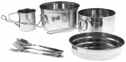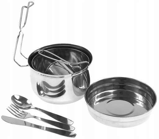 MENAŻKA TURYSTYCZNA Garnek, Rondel, Kubek, Sztućce, 7 elementów