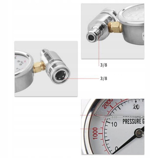 Zestaw Manometru Ze Stali Nierdzewnej, Szybkozłącze 3/8 Cala, 6000 PSI