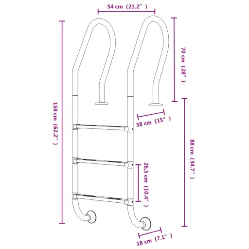 DRABINKA DO BASENU 54X38X158CM STAL NIERDZEWNA 304