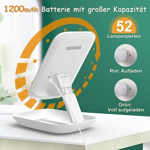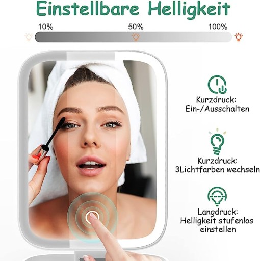 lusterko do makijażu z oświetleniem, lusterko kosmetyczne z 3 kolorami światła, ściemniana jasność i przełącznik dotykowy, wychylne 180°, ładowanie przez USB, 1200 mAh, składane lusterko do makijażu/golenia