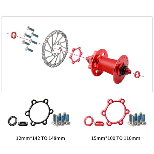 Pakiet zawiera: Ten zestaw zawiera 1 szt. Adaptera do konwersji piasty, 2 szt. Przekładki i 6 szt. Śrub.