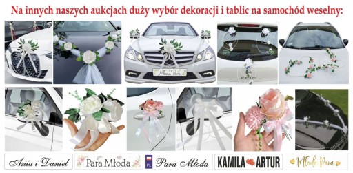 Kokardy będą pięknie wyglądają na samochodzie przywiązane do klamek oraz do lusterek. Polecamy zakup 6 szt. kokard, dzięki temu dekoracja będzie wyglądała bogato lub nawet większą ilość, bo kokardki można przymocować także na szybie lub masce auta po zakupieniu dodatkowo przyssawek z otworem, które bardzo łatwo połączyć z naszymi kokardami.