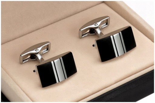 Wysokiej jakości stalowe spinki do mankietów zapakowane w pudełko.
