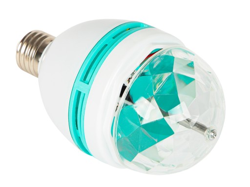 Gwint: E27Moc: 3WŹródło światła: 3 x 1W LEDNapięcie zasilania: 85 – 230 VBarwa: 3 kolory (czerwony, niebieski, zielony)Efekty: mieszane kolory RGBKąt świecenia: 120 stopniWysokość: 150 mmŚrednica: 80 mm