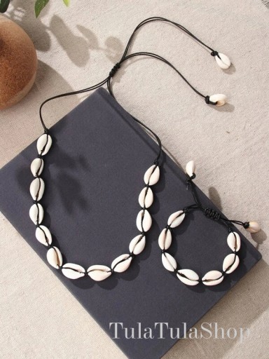 SUPER ZESTAW: naszyjnik (choker) i bransoletka na rękę plecione z muszelek KAURI, regulowane!