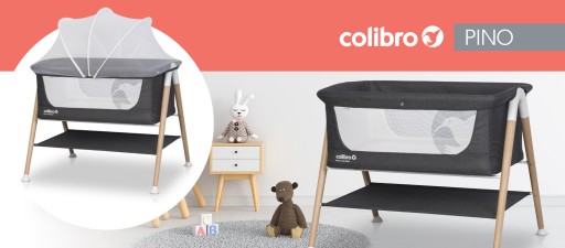 - ✔️ Łóżeczko dziecięce Pino marki Colibro, w zestawie z materacykiem i moskitierą