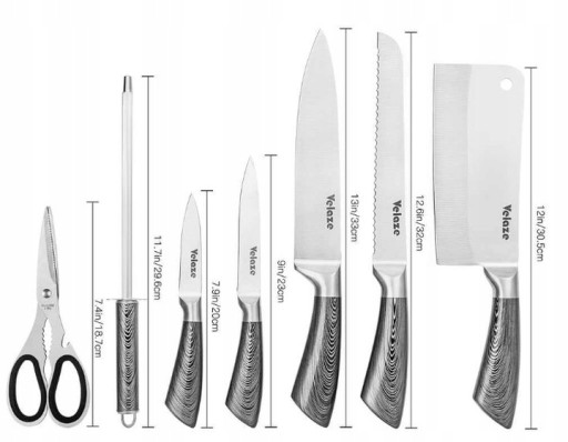 ZESTAW NOŻY KUCHENNYCH VELAZE - 8 elementów - stal nierdzewna