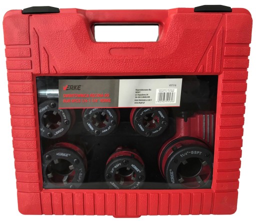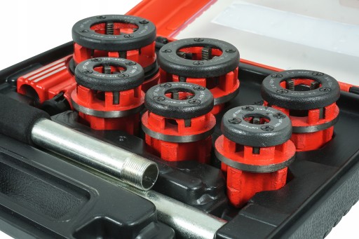 Wysokiej jakości zestaw do gwintowania rur. W skład zestawu wchodzi gwintownica ręczna z systemem grzechotkowym znacznie ułatwiającym pracę oraz przełącznik kierunku pracy. W skład zestawu wchodzi 6 głowic wymiennych w rożnych rozmiarach. Głowice wykonane są z bardzo trwałego i mocnego materiału. Zestaw zapakowany jest w plastikową walizkę wygodną w przenoszeniu oraz przechowywaniu wszystkich elementów.