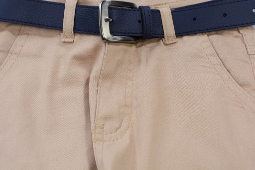- spodnie beżowe z dwiema kieszonkami z przodu, 2 kieszenie z tyłu /regulacja w pasie gumką na guziczek/