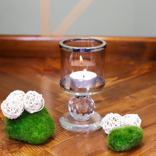 Pragniemy przedstawić Państwu szklany świecznik na tealighta lub świecę o maksymalnej średnicy 5 cm