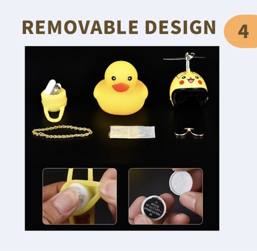 Dzwonek rowerowy kaczka z kaskiem i śmigłem jest wykonany z wytrzymałego, wodoodpornego na warunki atmosferyczne materiału, co gwarantuje jego trwałość i długotrwałe użytkowanie. Kaczuszka jest łatwa w montażu i pasuje do większości standardowych kierownic rowerowych, motocyklowych lub innych pojazdów. Jeśli chcesz wyróżnić się na drodze, dodać odrobinę uroku do swojego roweru i jednocześnie zwiększyć swoje bezpieczeństwo, dzwonek rowerowy kaczka z kaskiem i śmigłem jest idealnym wyborem. Wypróbuj go już dziś i ciesz się niezapomnianymi przejażdżkami w oryginalnym stylu!