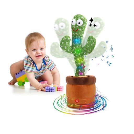 WESOŁY ŚPIEWAJĄCY TAŃCZĄCY KAKTUS POWTARZA LED ładowanie przez USB