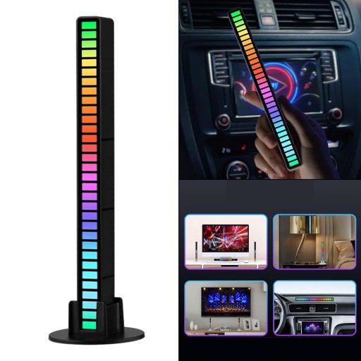 32 diody LED olśniewające koraliki świetlne wbudowany mikrofon z regulacją czułości, kolor świateł będzie się zmieniał w rytm dźwięku i muzyki.
