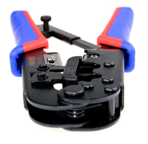 - Do zagniatania telefonicznych wtyków 6- i 8-stykowych typu RJ 11/12 (szer. 9,65 mm) i typu RJ 45 (szer. 11,68 mm); długi kształt