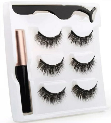 RZĘSY MAGNETYCZNE 3X DŁUGIE + PĘSETA + EYELINER