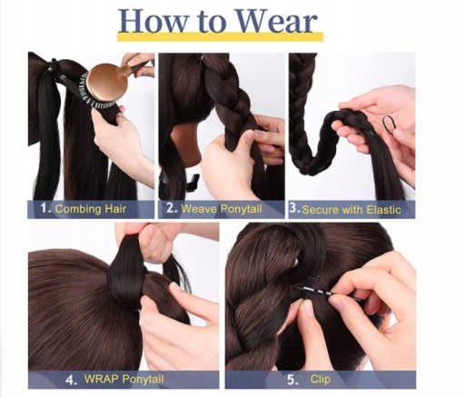 Łatwy w założeniu doczepiany kuc na warkoczyk w kolorze #1b czarnym