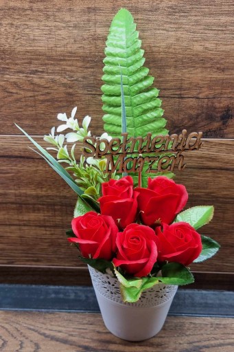 Na sprzedaż oferujemy kompozycję kwiatową - bukiet z kwiatami mydlanymi, które nie tylko udekorują wnętrze, ale również zapełnią je delikatnym i przyjemnym zapachem. Kompozycja została wykonana z wysokiej jakości materiałów, co gwarantuje trwałość i estetyczny wygląd.