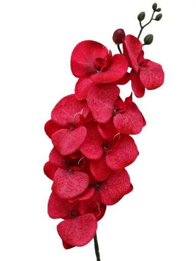 Wysokiej jakość wykonanie sprawia, że kwiaty wyglądają bardzo naturalnie. Płatki z charakterystycznym dla storczyków unerwieniem o przepięknej intensywnej barwie. Kwiaty wykonane są z wysokiej jakości włókna. Są one lekko usztywniane, ułożone wokół łodygi, dają trójwymiarowy efekt.