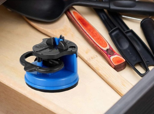 Ostrzałka jest bardzo prosta w obsłudze. Wystarczy przytwierdzić ostrzałkę za pomocą przyssawki do suchego i czystego blatu, włożyć ostrze między płytki z wolframu i delikatnie zacząć przeciągać nóż w swoim kierunku. Nie musisz się martwić się o stabilność ostrzałki i trzymanie ostrza pod właściwym kątem. Nie trzeba też przytrzymywać produktu ani dociskać noża do płytek.