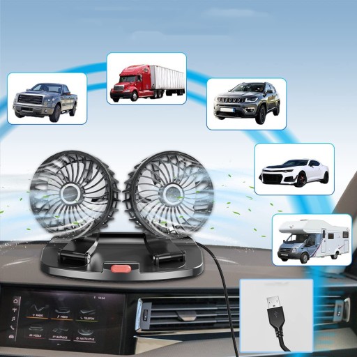 🍃Konstrukcja z dwoma głowicami: Ten wentylator samochodowy z dwiema głowicami zapewnia silny wiatr, zapewniając chłód w upalne dni.