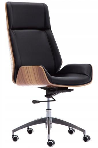 ВРАЩАЮЩИЙСЯ СТУЛ, СТУЛ FLIS, ОРЕХ, ЧЕРНАЯ КОЖА