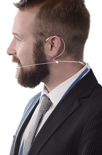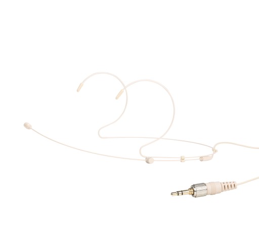 z hipoalergicznymi paskami na uszy, zapewniając maksymalną elastyczność i komfort podczas pracy. Regulacja za pomocą pokrętła umożliwia swobodne dopasowanie mikrofonu do każdego typu twarzy. Mikrofon powlekany trwałym lakierem w kolorze różowym, idealnie dopasowuje się do koloru skóry, aby zapewnić jak najmniejszą widoczność wśród profesjonalnych kamer video.