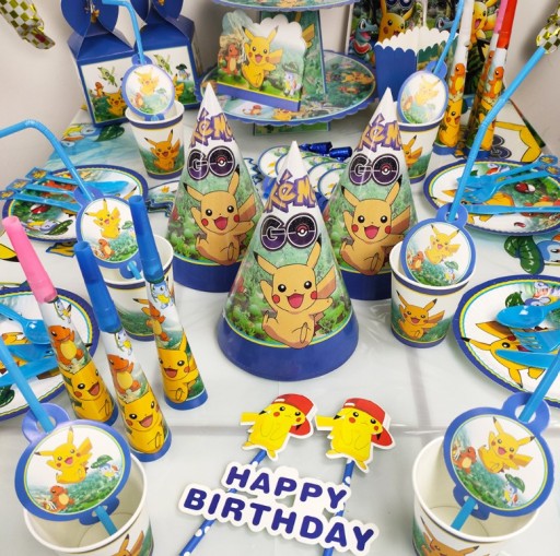 Zestaw kubki + talerzyki + serwetki urodzinowe Pokemon