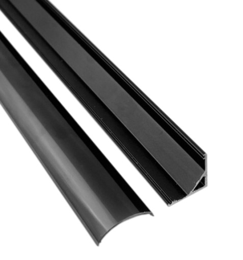 2mb Алюминиевый профиль CORNER, черный, широкий угол + абажур