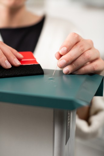 - można ją bez problemu usunąć (najlepiej okleinę lekko podgrzać suszarką, a następnie ściągnąć w kierunku odwróconym o 180°).