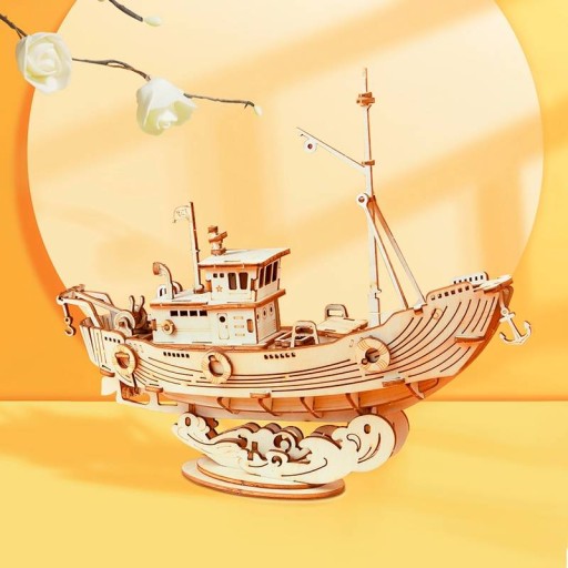 ROBOTIME Деревянная 3D-модель головоломки Рыболовный корабль