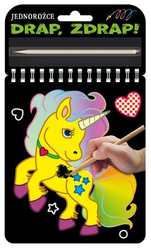 - Książeczka ZDRAPYWANKA z RYSIKIEM, dzięki któremu powstaną kolorowe obrazki z jednorożcami.