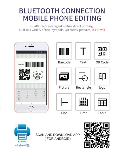 Super lekk, nowoczesna i uniwersalna drukarka etykiet KLP-II łączy w sobie niewielkie wymiary, łączność USB i Bluetooth oraz szybkość i niezawodność druku. Drukarka posiada własny akumulator, tak więc jest niezależna od zasilania.