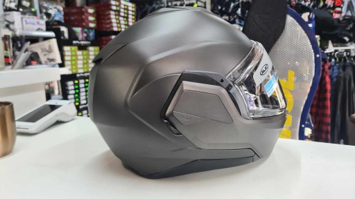Kask motocyklowy HJC i100 jako kask systemowy z obrotową szczęką, łączy zalety kasku otwartego z integralnym. Zaawansowana skorupa APC z technologią CAD zapewnia dopasowanie i wygodę. HJC i100 ma podwójną homologację i aż 3 rozmiary skorupy. Istnieje możliwość instalacji interkomu SMART HJC.