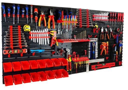 Pomimo, że tablice, uchwyty i pojemniki są plastikowe świetnie sprawdzą się w profesjonalnym warsztacie ale i w przydomowym garażu.