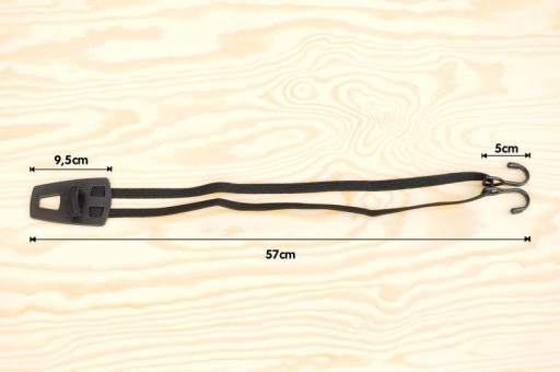 Mocna guma firmy BIBIA służąca do przytrzymania bagażu przewożonego na przednim bagażniku rowerowym typu PICK-UP. Bardzo mocna guma, metalowe haki z powłoką. zabezpieczającą przed zarysowaniem bagażnika.