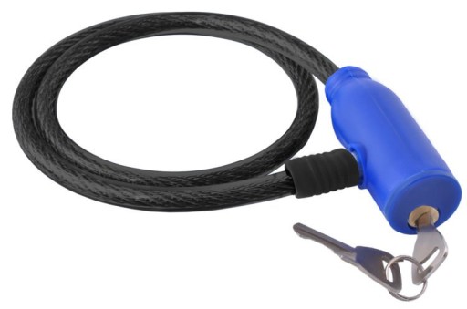Zapięcie rowerowe, chroniące przed kradzieżą. Mocno spleciona linka w twardej silikonowej osłonie, wykonana jest ze stali. Zamek jest wzmacniany dodatkowo wytrzymałym plastikiem.
