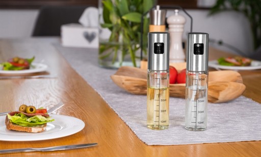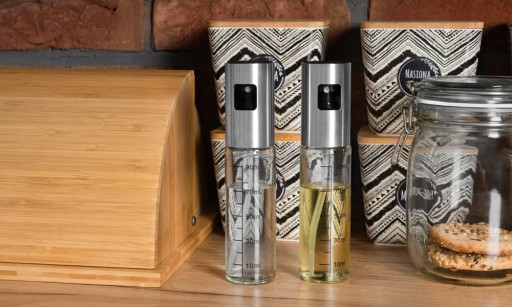 Wystarczy nacisnąć pompkę, aby rozpylić mgiełkę z oliwą lub octem, dokładnie kontrolując jej ilość.