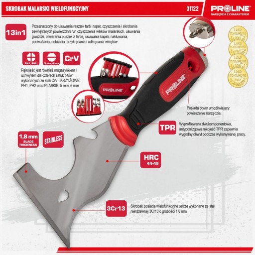 SKROBAK WIELOFUNKCYJNY,STAL NIERDZ. 1.8MM,UCHWYT TPR,PROLINE