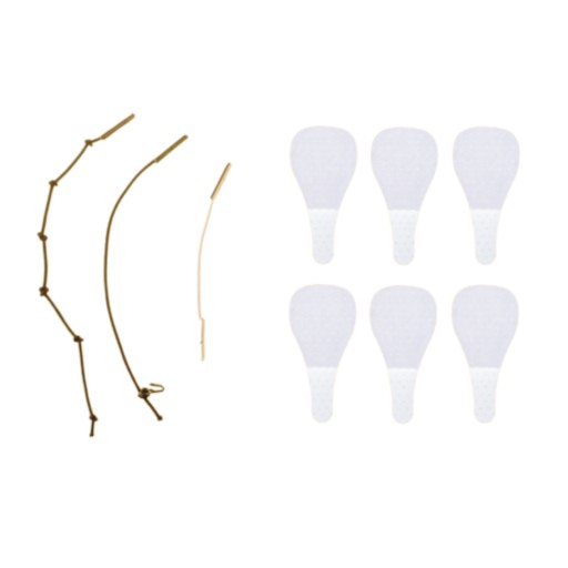 Taśmy wykonane są z hipoalergicznego, bezpiecznego i oddychającego materiału. Sugerujemy, aby wymieniać je po każdym użyciu natomiast gumki są produktem wielokrotnego użytku.